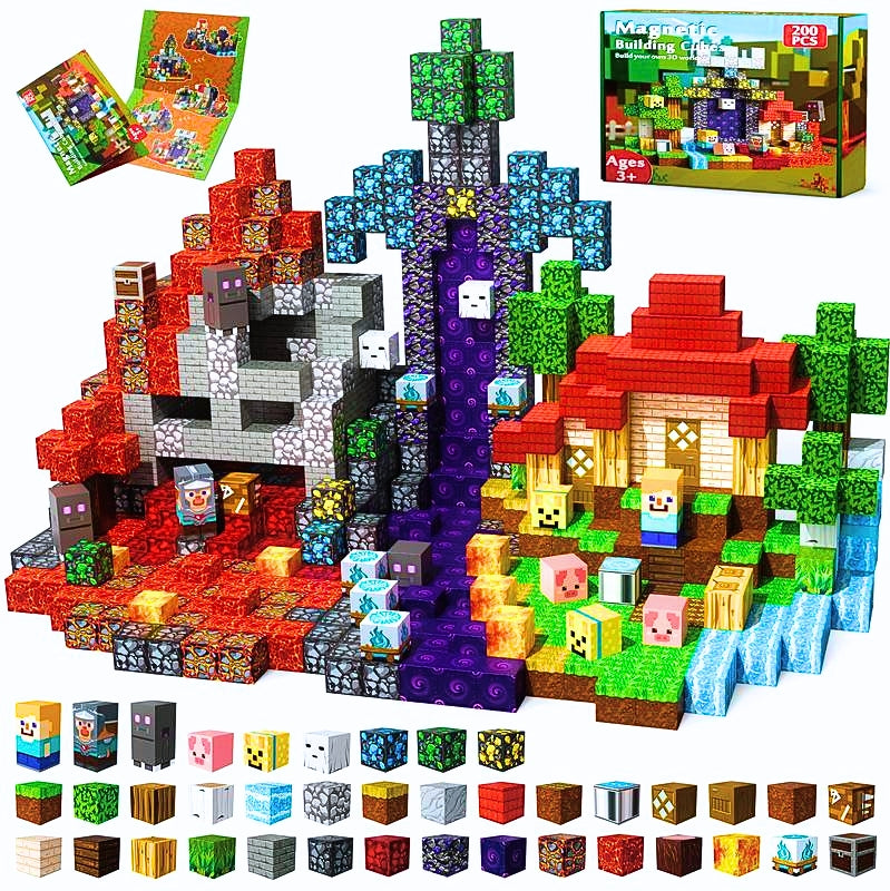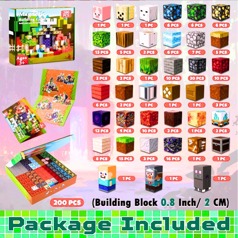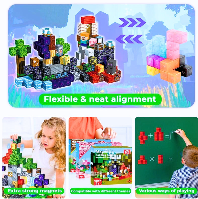 Let your childās imagination run wild! With this amazing pixel-style magnetic block set, kids can build entire worlds inspired by their favorite games like Minecraft.